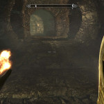 Since Paul advised me one of the Stones of Barenziah was in the Hall of the Dead in Whiterun, I sent Lydia back to Dragonsreach and then popped in there to see if I could find it. Had a chat with the priest of Arkay who was there, and who recruited me to go down into the catacombs and find his lost amulet. He’d have done it himself, except he was hearing unsettling noises from below.