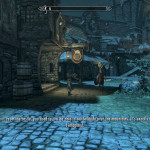 I’d expected he would. Which is why, as soon as I landed in Solitude with Serana, I saved right by the front gates. I wound up reverting back to that save on purpose once–because when I found the Traveler the first time, he killed one of the NPCs from the Blue Palace. Not happening, you vampire bastard.