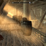 I was frankly surprised that I made it through the warehouse without getting spotted once. But my Sneak’s over 60 as of this writing, and that served me very, very well. Mostly didn’t even have to use the Throw Voice Shout, either. Just very judicious timing of when I moved from one hiding place to another, and also judicious nabbing of torches to increase the shadowed areas to hide in.