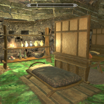 I really gotta admit, for all of the “people hiding out in a cave” type hideouts in Skyrim, Ashfall’s Tear is hands down the nicest one I’ve seen. The designers of this particular Creation did a really nice job on it. The living quarters looked surprisingly comfy, with nicer-looking beds than the standard cots I’m used to seeing in this game. And there were lovely green inlaid floors all over the place.