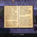One last thing, though, was the mysterious book appearing out of nowhere on a chair up the stairs! I ran up to check this out, and found what I’d been warned to expect: a book with a message from Darien Gautier. Who warned about not trusting Daedric Princes, and who missed me. Awww, thank you, Golden Boy, I miss you and your shoulders too. <3