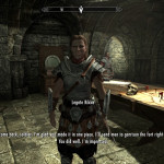 - Reported to Beirand for gear; told him “medium” before I remembered, oh right, the studded Imperial armor can’t be improved without the bugfix patch 😛