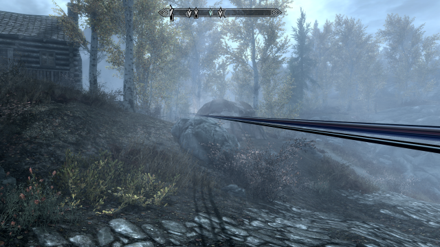 • The guards actually won the fight, but since Eorlund is Essential up until the Glory of the Dead quest, he didn’t actually die, he just fell over into the “dead” pose–but we could still talk to him!