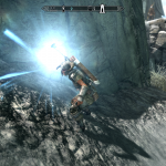 (Side note here: it’s worth noting that as of this writing, I’ve now done some group action in Elder Scrolls Online, where I explicitly practiced being one of two healers for a group of 12. Being that formal is probably taking it a bit more seriously than Skyrim Together warrants! But that said, it does suggest for me that I need to consider getting hold of easy ways to heal Dara and Mel in fights like this. I’ve done similar things in prior actual Skyrim playthroughs, throwing heals on my housecarls and such. It might have helped!)