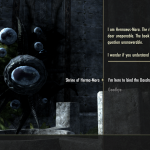 But I was also generally kind of amused by the idea of signing a physical contract with him. I mean, it’s not like Hermaeus Mora has hands, so he couldn’t sign it himself. And I didn’t see any sign of his magically imprinting the thing with his seal or anything like that… which, come to think of it, is possibly a plot point. So when I play Necrom I damn well better keep an eye out about that.