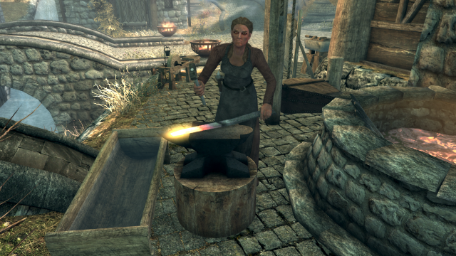 Not sure if I’m a fan of High Poly Heads, but this may also be a problem of High Poly Heads in conjunction with Fine Face Textures for Men. I’m getting an overall visual impression that most of the male NPC faces have been homogenized, maybe in an attempt to make them look handsomer? Mostly so far I’ve noticed this with Belethor, who seems less craggy now than he does in vanilla Skyrim. And I feel like some of the dudes in this game should be craggy. Not all the male NPCs should be super-gorgeous!
