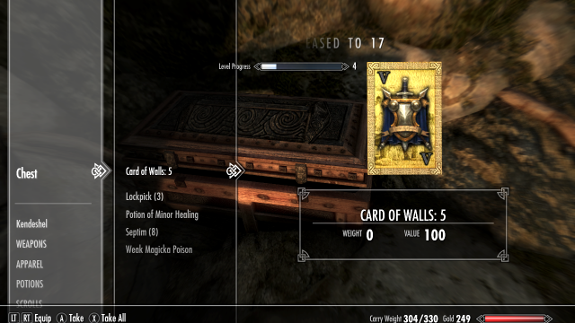 So I wound up nabbing some Stormcloak and Imperial gear, thinking ahead to how I could send that stuff off to the museum. But of course I also got loaded down pretty quick.