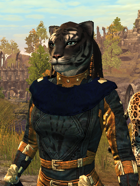 Ashoshah returns to my naming scheme of naming characters after ones I’ve personally written–although the character she’s named for is not yet in published work. I chose the name here because I thought it would work well for a Khajiit.